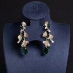 These teardrop-shaped zircon earrings feature a long, silver needle-leaf design, making them a perfect wedding accessory for women.