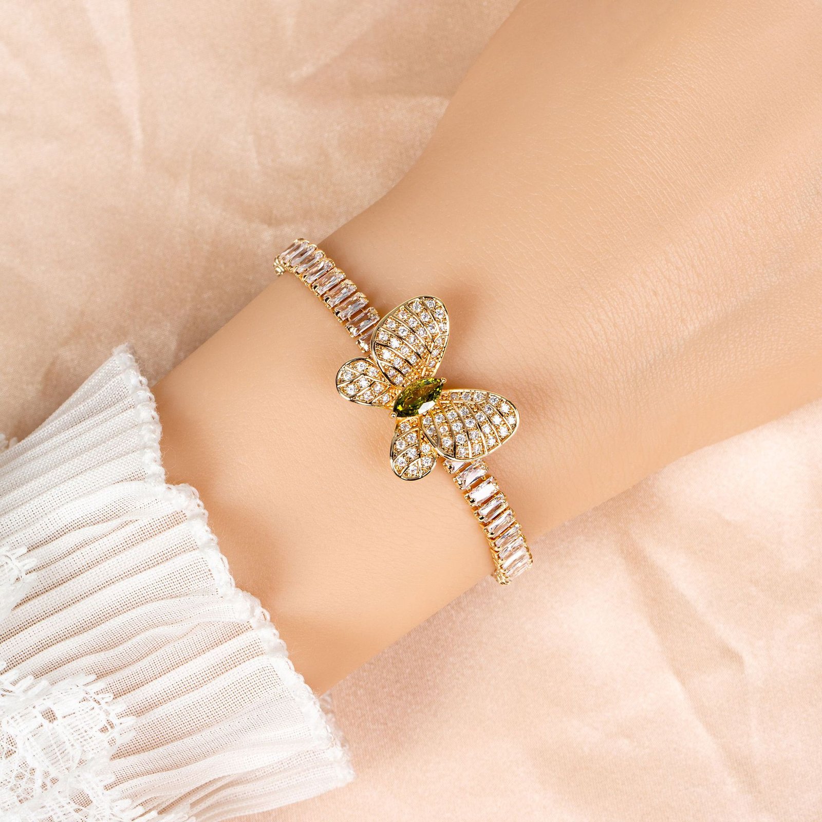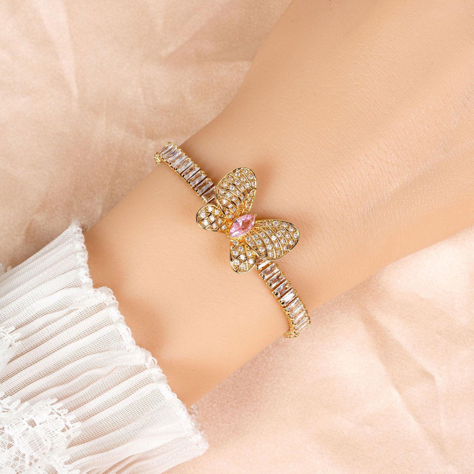 This women’s bracelet features luxurious zircon and a butterfly design, making it unique, sophisticated, and perfect as a bracelet for best friends.