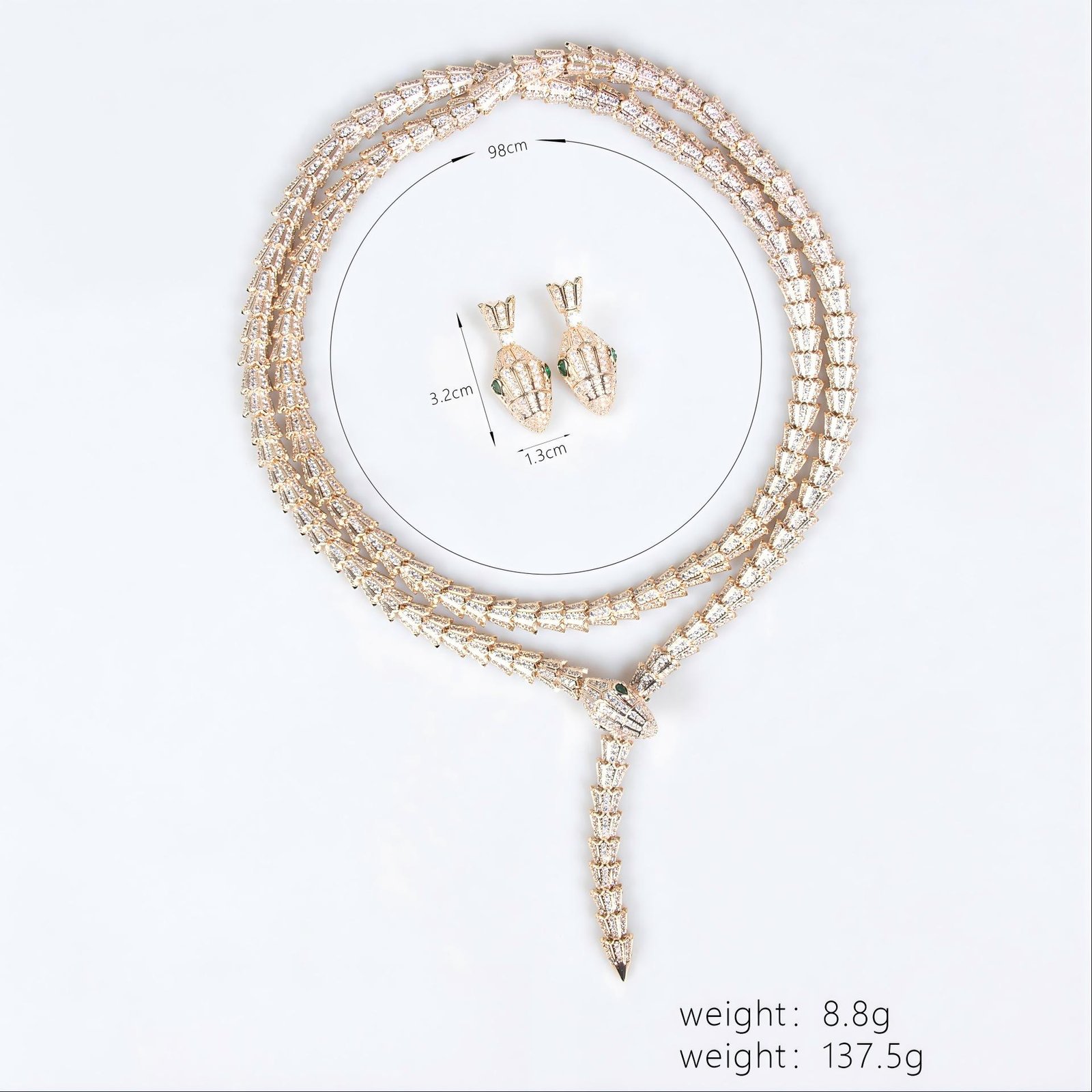 | Cubic Zirconia | Necklace & Earrings | Setting | Animal | — | Snake Bone Chain | — | — | Minimalist Style | 137.5 + 8.8 | Women |