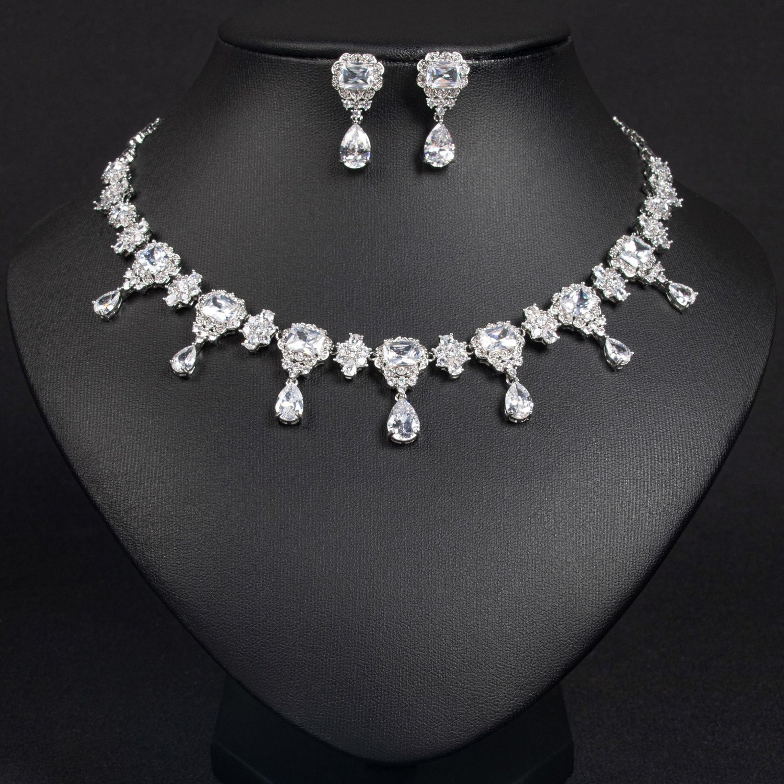 Square teardrop women’s necklace set