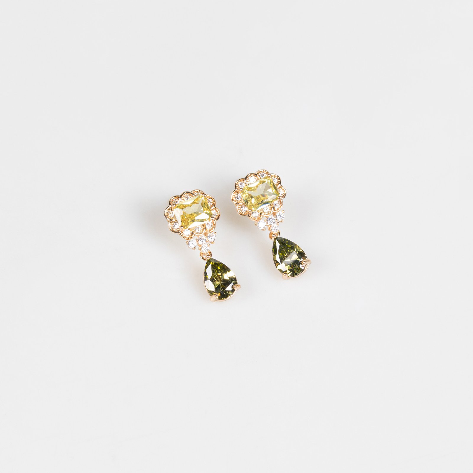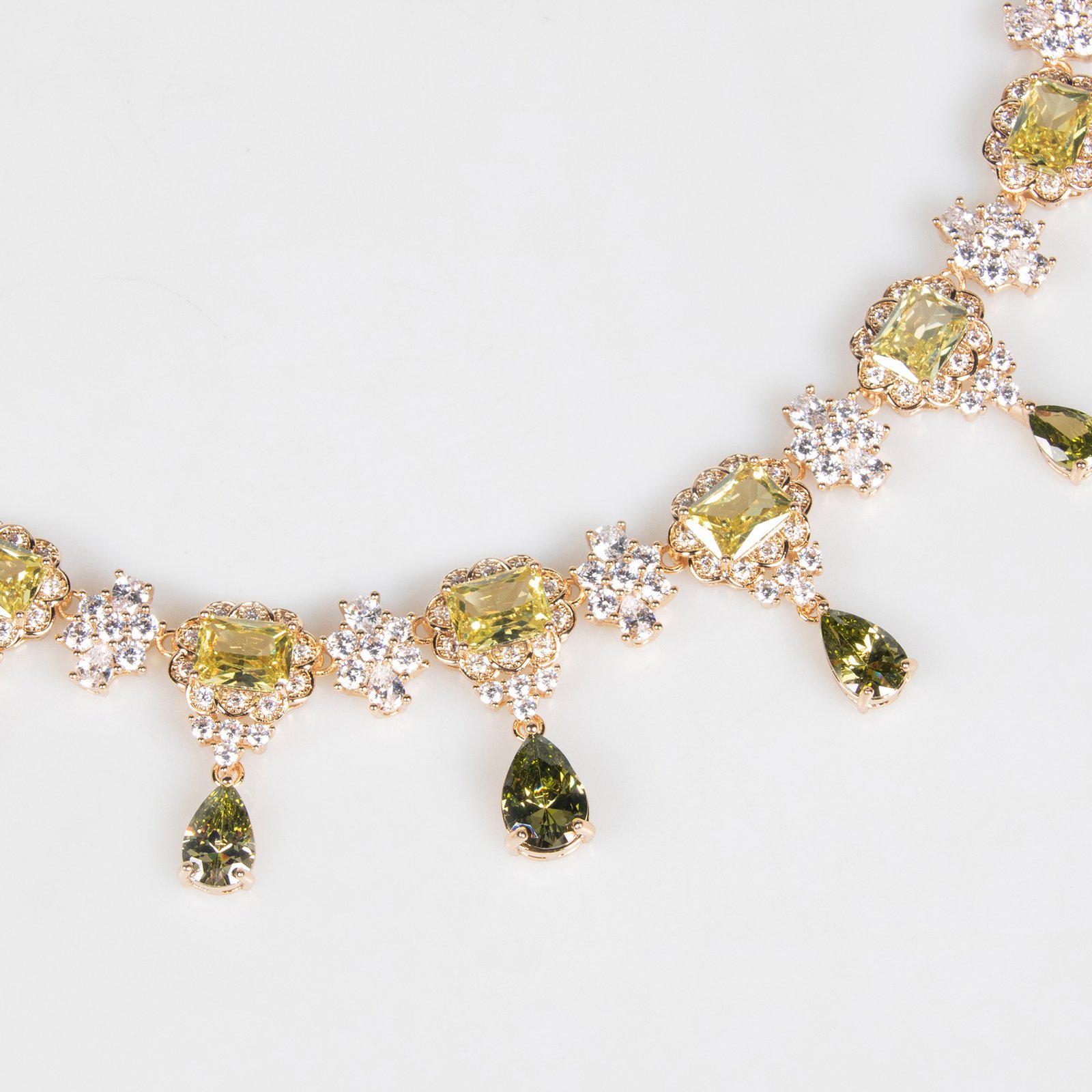This square teardrop necklace set for women features micro-set diamonds, cubic zirconia, and other colored gemstones, exuding a sophisticated and elegant style.