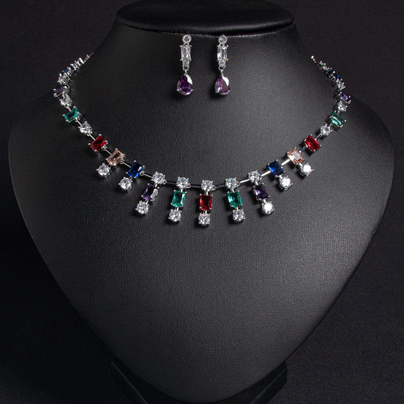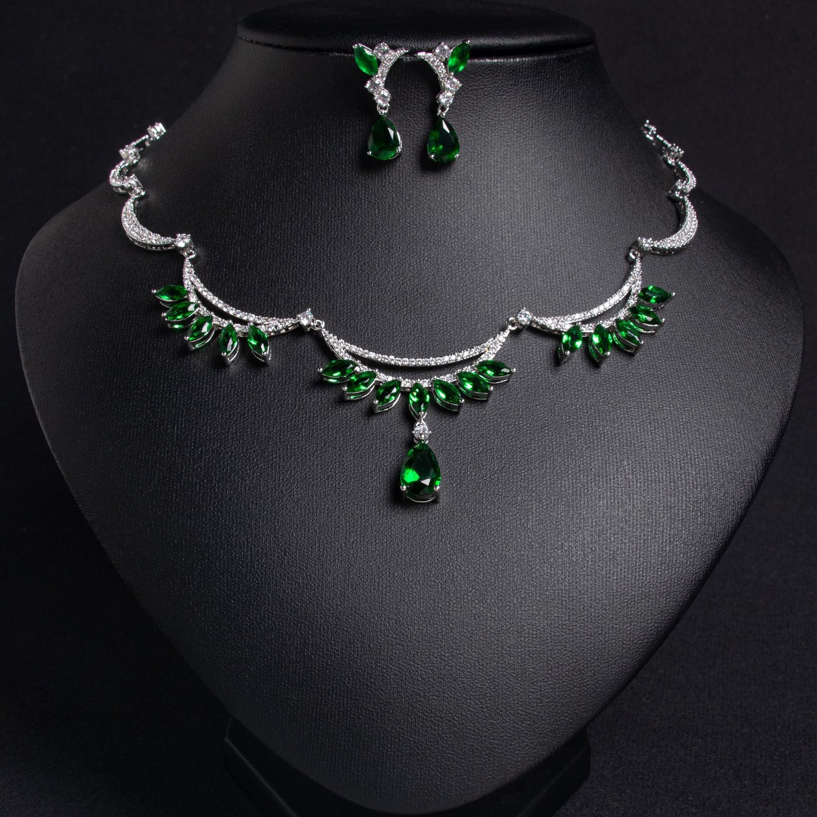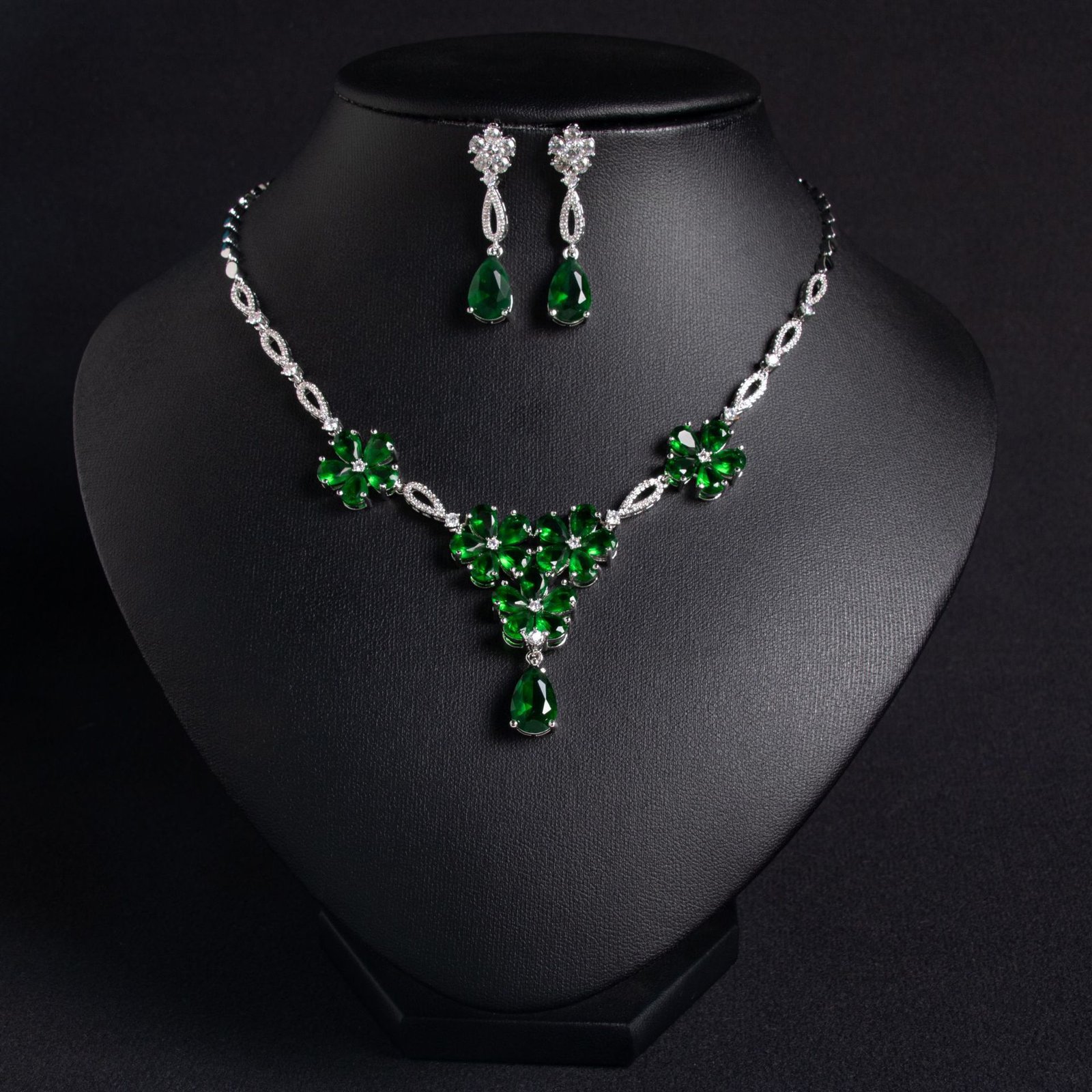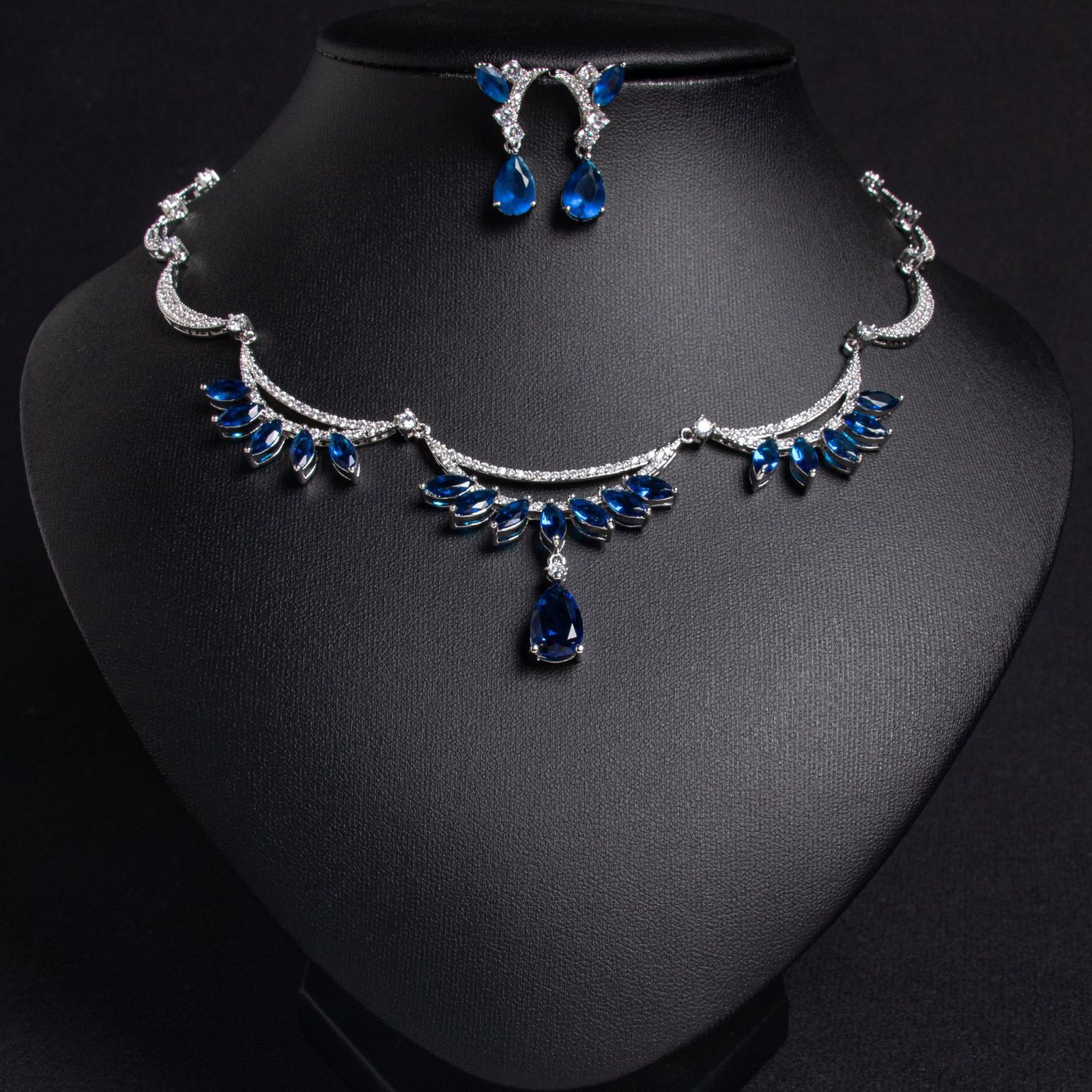 This stylish and dazzling set of zircon teardrop necklace and earrings is perfect for brides to wear on their wedding day, exuding a glamorous and sophisticated aura.