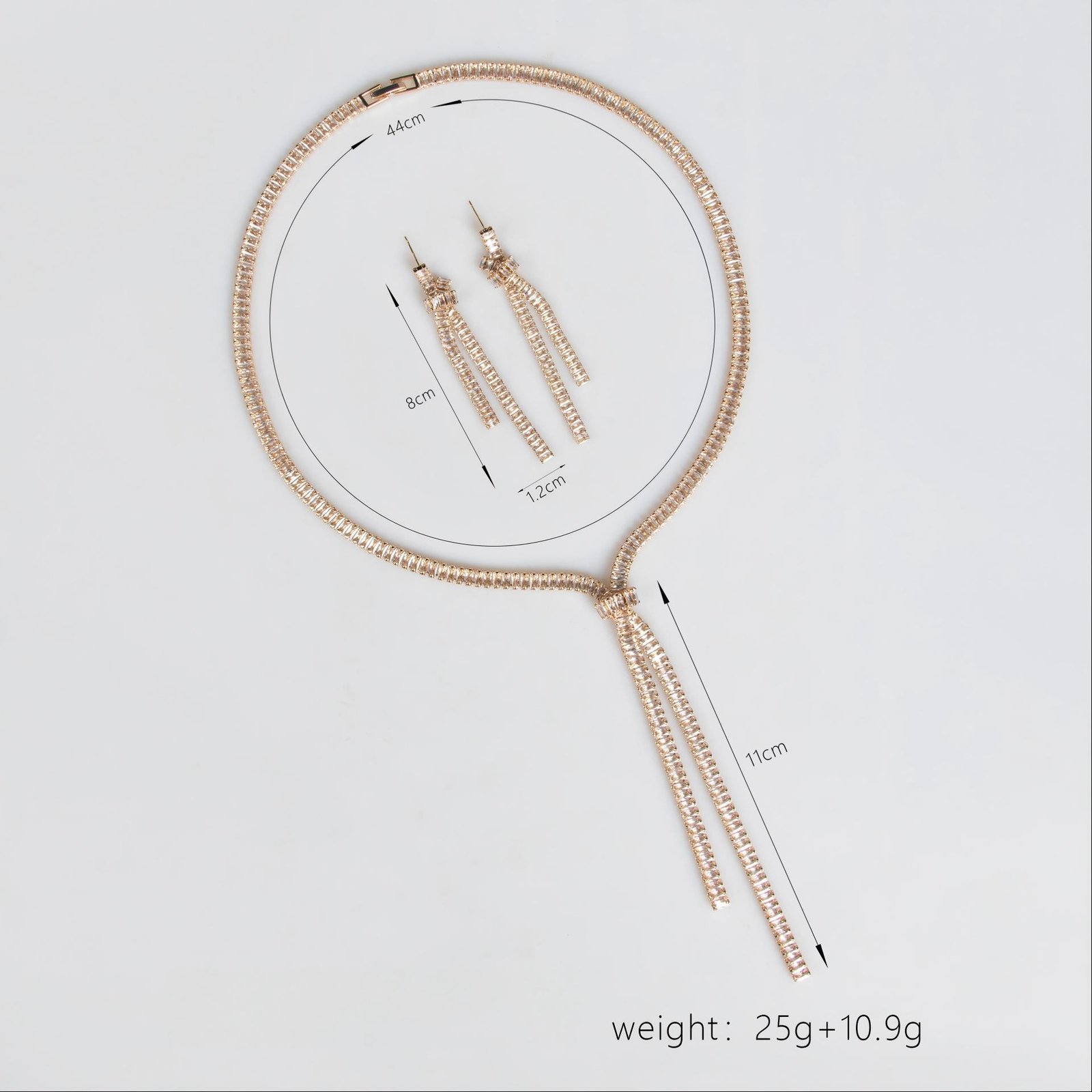 This elegant claw chain zircon necklace and earring set features a simple geometric design, perfect for pairing with formal attire and exuding luxury.