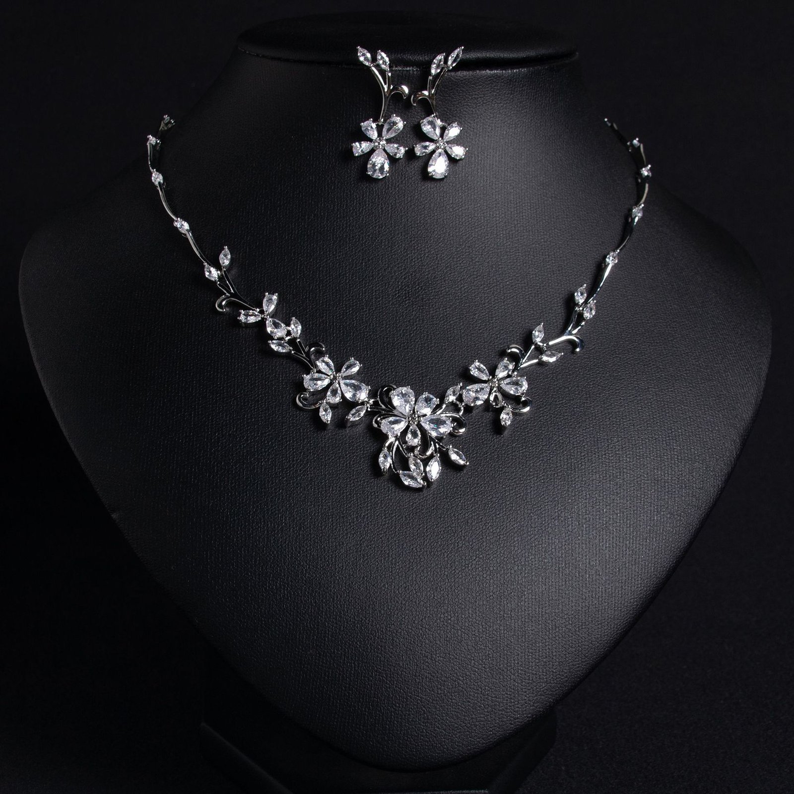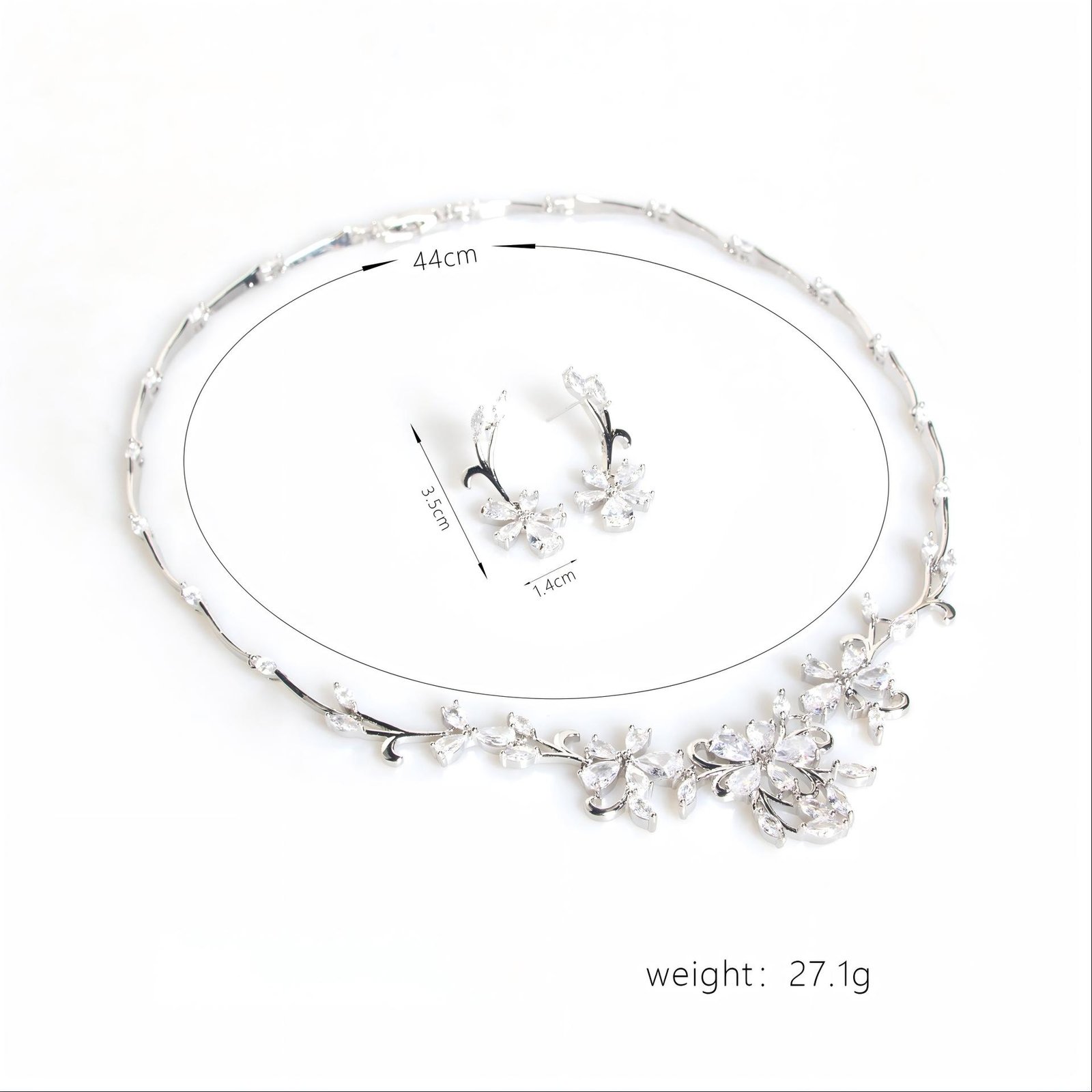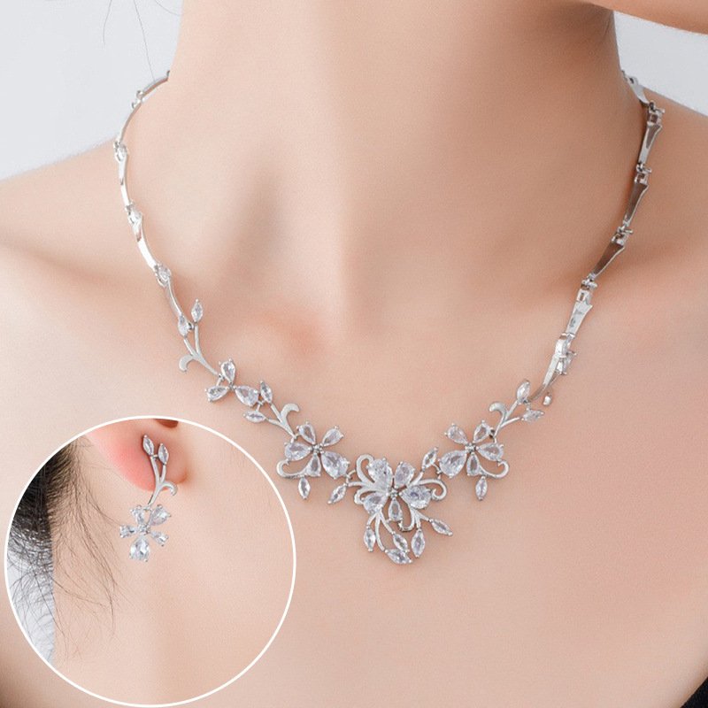 Bridal Zircon Necklace Set with Floral Vine, Versatile, Refreshing and Simple Petal Accessories