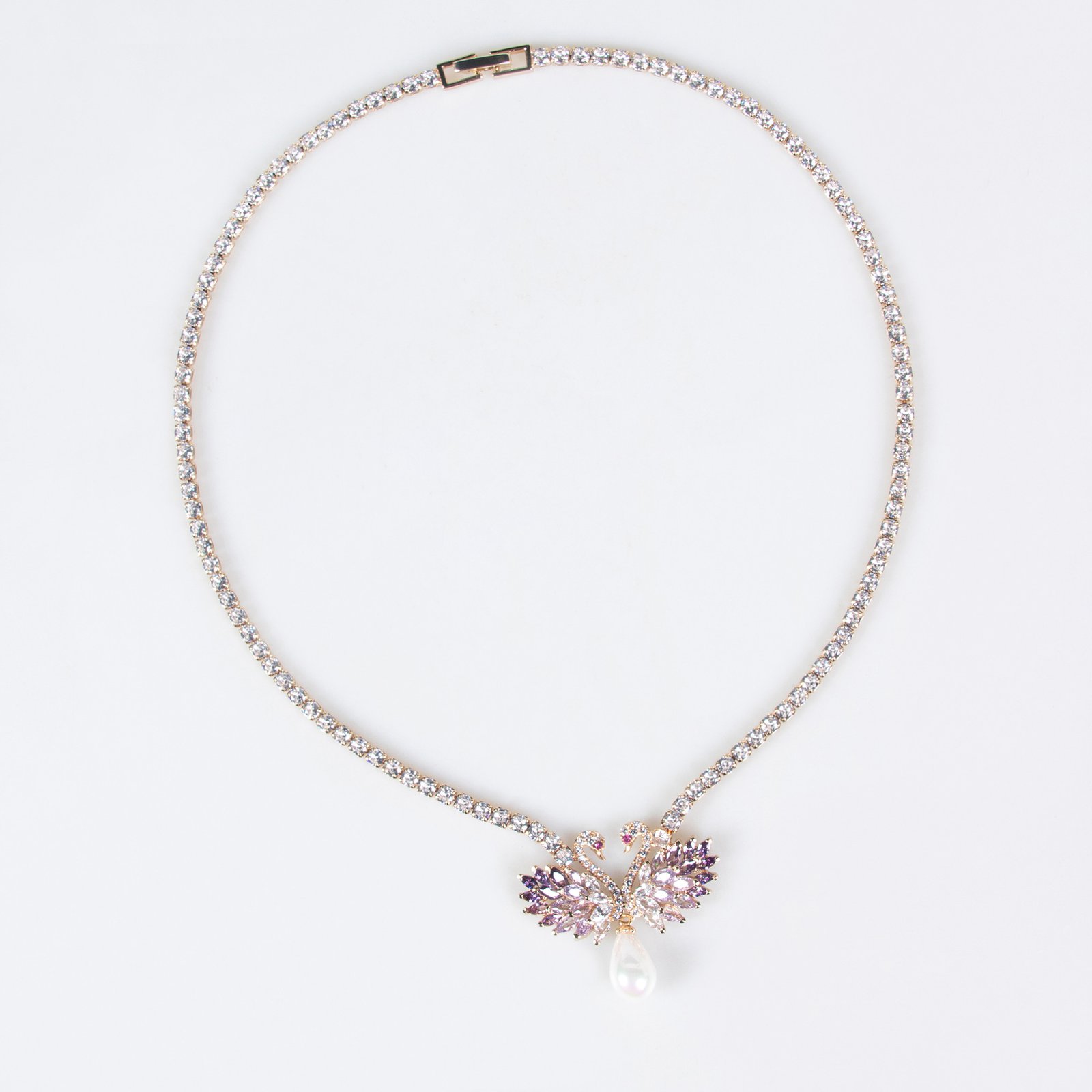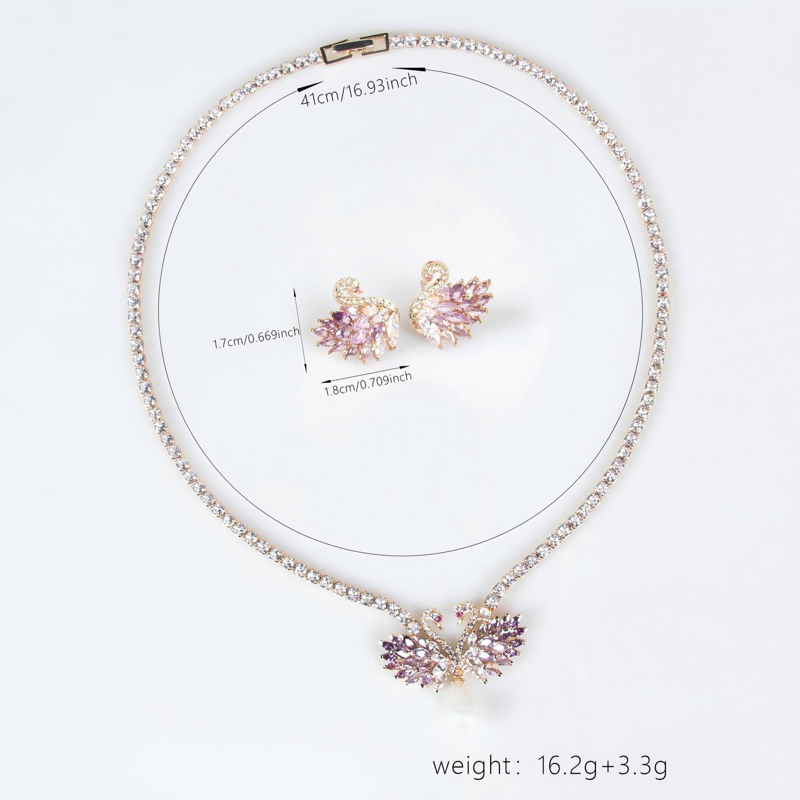 This new zircon luxury necklace and earring swan set is perfect for pairing with dresses; its exquisite design makes it a great jewelry choice.